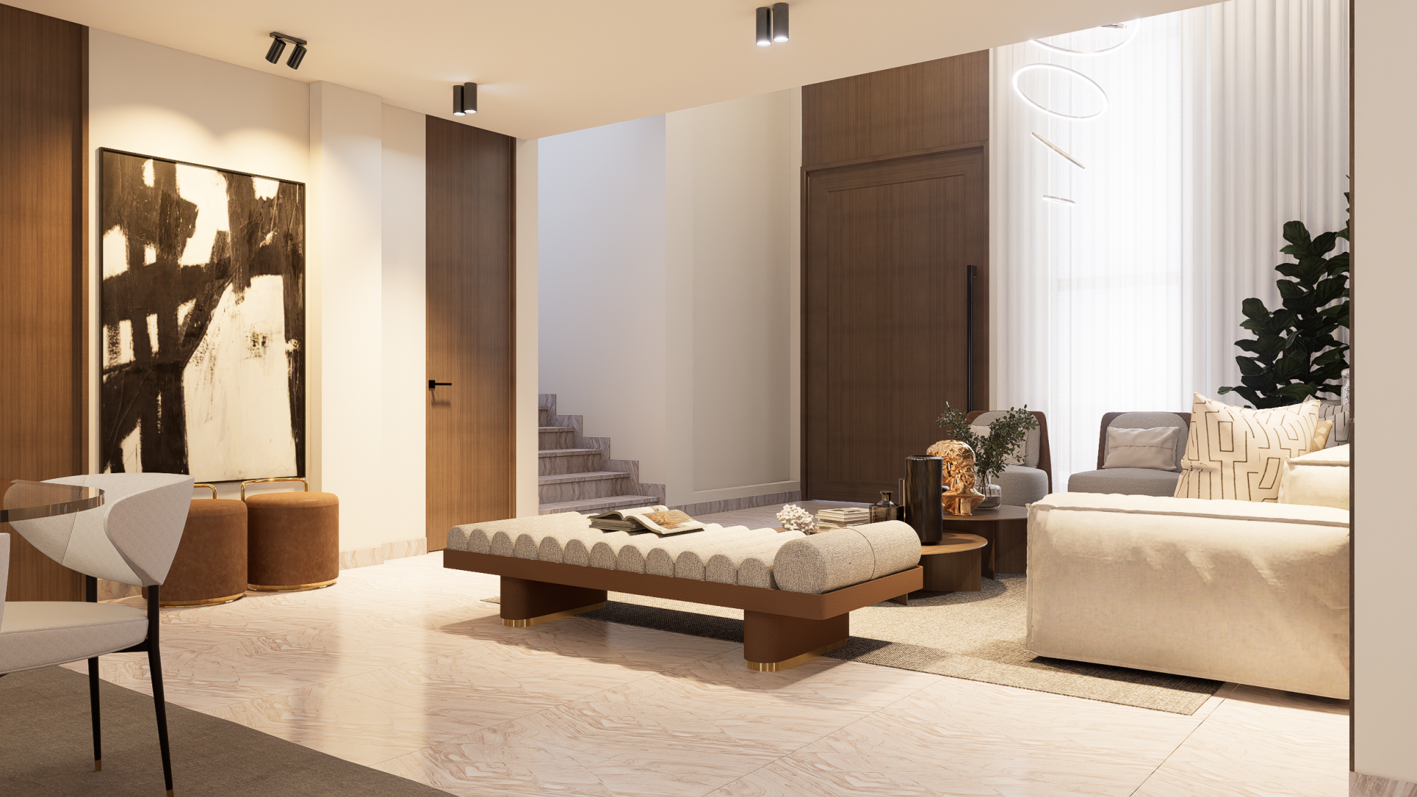 PROYECTO RESIDENCIAL PRIVADO Bienvenidos a este proyecto resicdencial, donde la fachada contemporánea se fusiona con colores neutros y materiales cálidos, creando un diseño meticuloso y una estética sofisticada. Los espacios interiores se distinguen por su abundante luminosidad y ventilación na