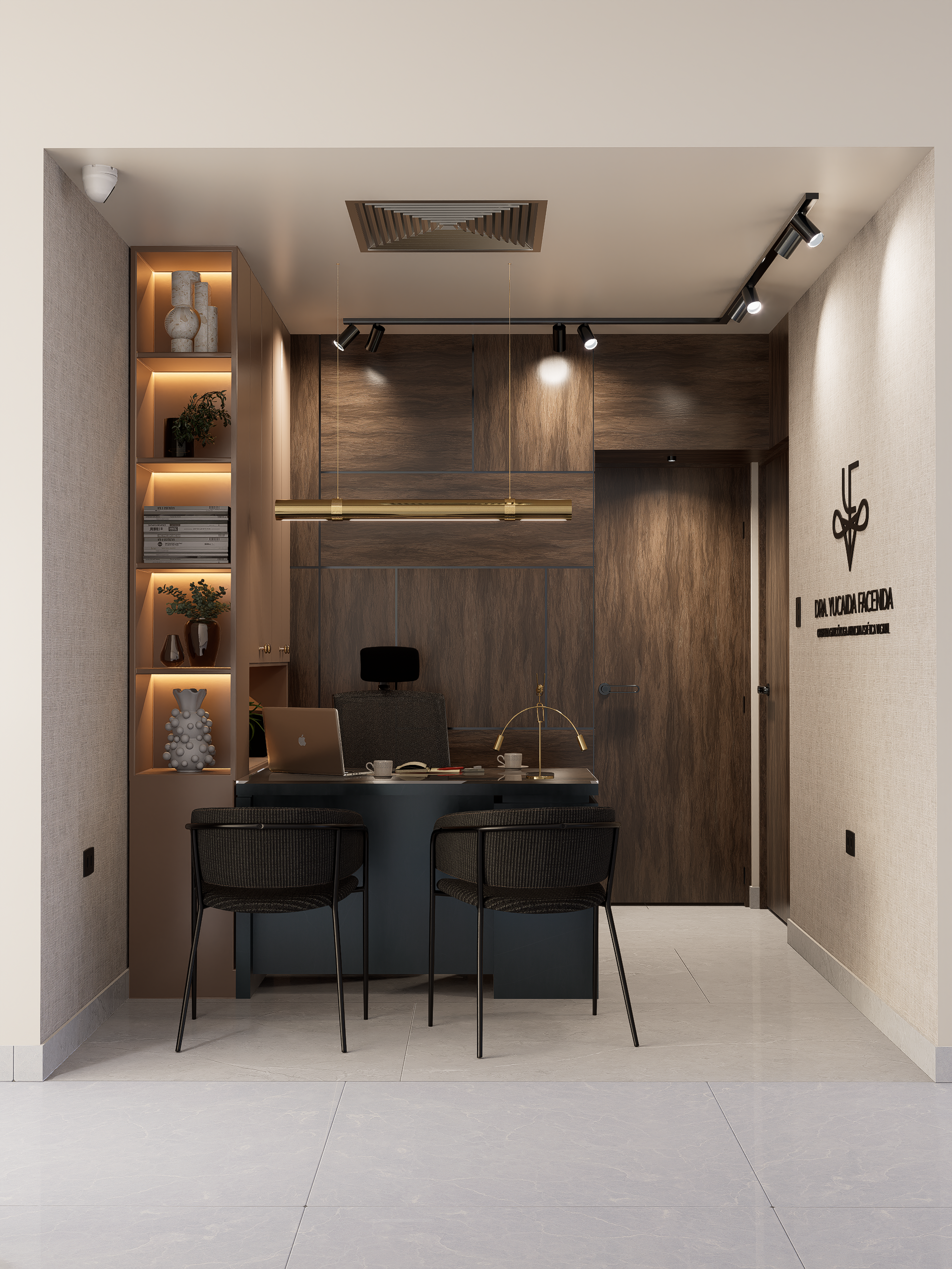 DRA. YUCAIDA FACENDA Description Le presentamos un proyecto de diseño interior que nace de la fusión entre sofisticación y armonía. Esta intervención redefine la percepción de un consultorio a través de una arquitectura de interiores de alto nivel, caracterizada por una estética cálida y co