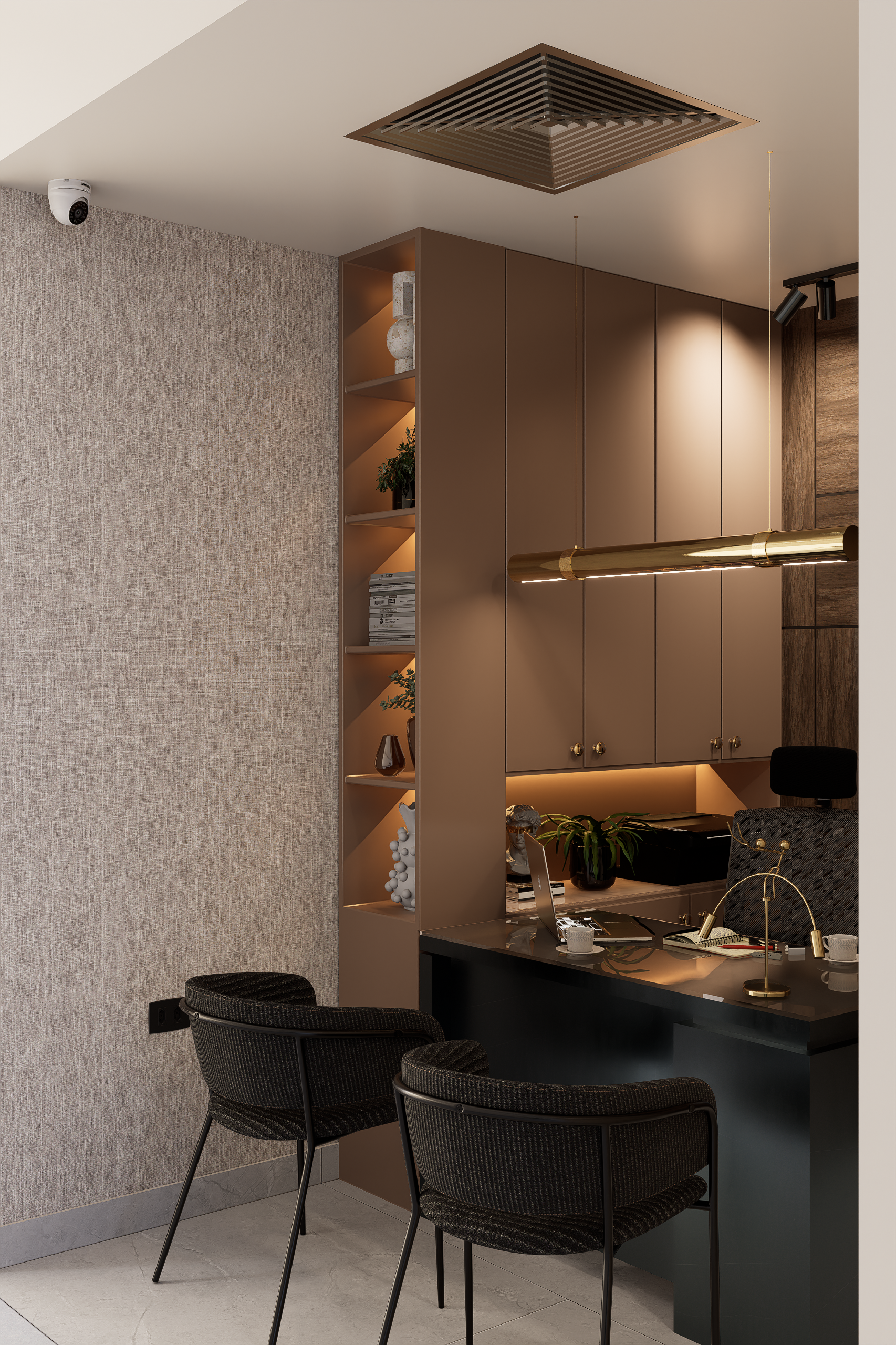 Le presentamos un proyecto de diseño interior que nace de la fusión entre sofisticación y armonía. Esta intervención redefine la percepción de un consultorio a través de una arquitectura de interiores de alto nivel, caracterizada por una estética cálida y confortable. En primer lugar, la reorganización de los espacios permitió un mejor aprovechamiento del área, optimizando su funcionalidad sin comprometer la estética.