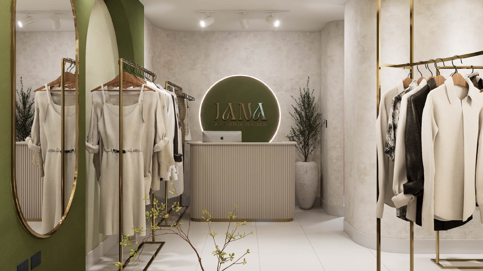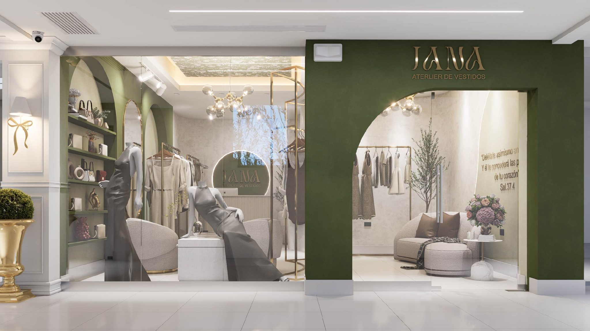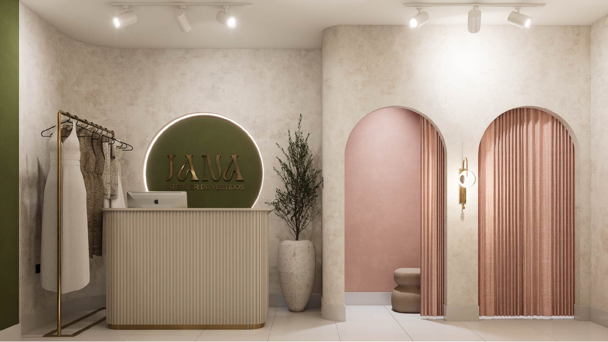 Al atelier de vestidos colócale este encabezado porque se pare mucho al de JOSADAC: Descubra una propuesta ejemplar de diseño interior comercial, donde la armonía estética se refleja en cada rincón. La intervención de este local ha sido cuidadosamente concebida para ofrecer un espacio sofisticado y elegante, sin perder su esencia como tienda de alquiler de piezas de vestir. El interior se presenta con una paleta cromática cuidadosamente seleccionada, en la que tonos neutros se combinan con sutiles acentos de color, complementados por materiales que aportan dinamismo y distinción.