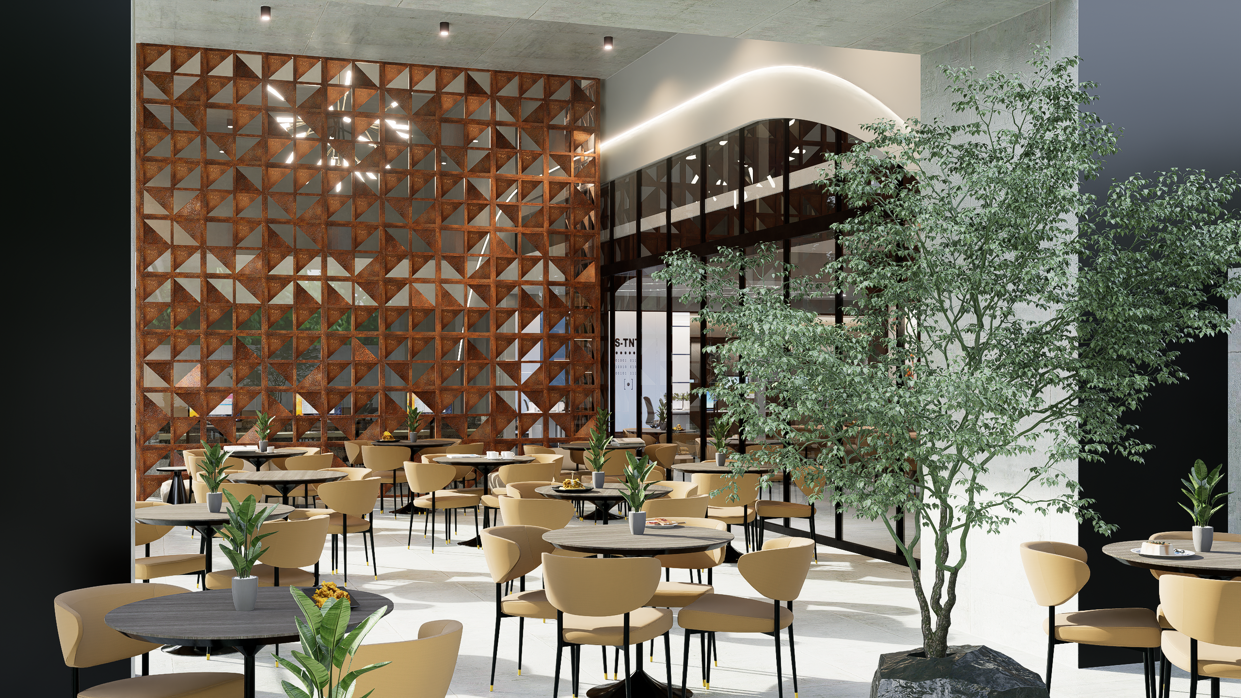 Conexión: Se diseño un espacio central que infundefrescura y tranquilidad al proyecto, funcionandocomo un punto de encuentro y descanso paralos usuarios.